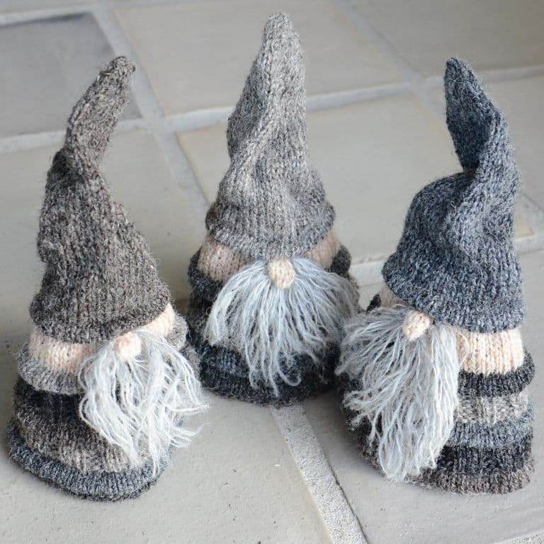 Goblins knitted on DPNs with pleats and different textures.